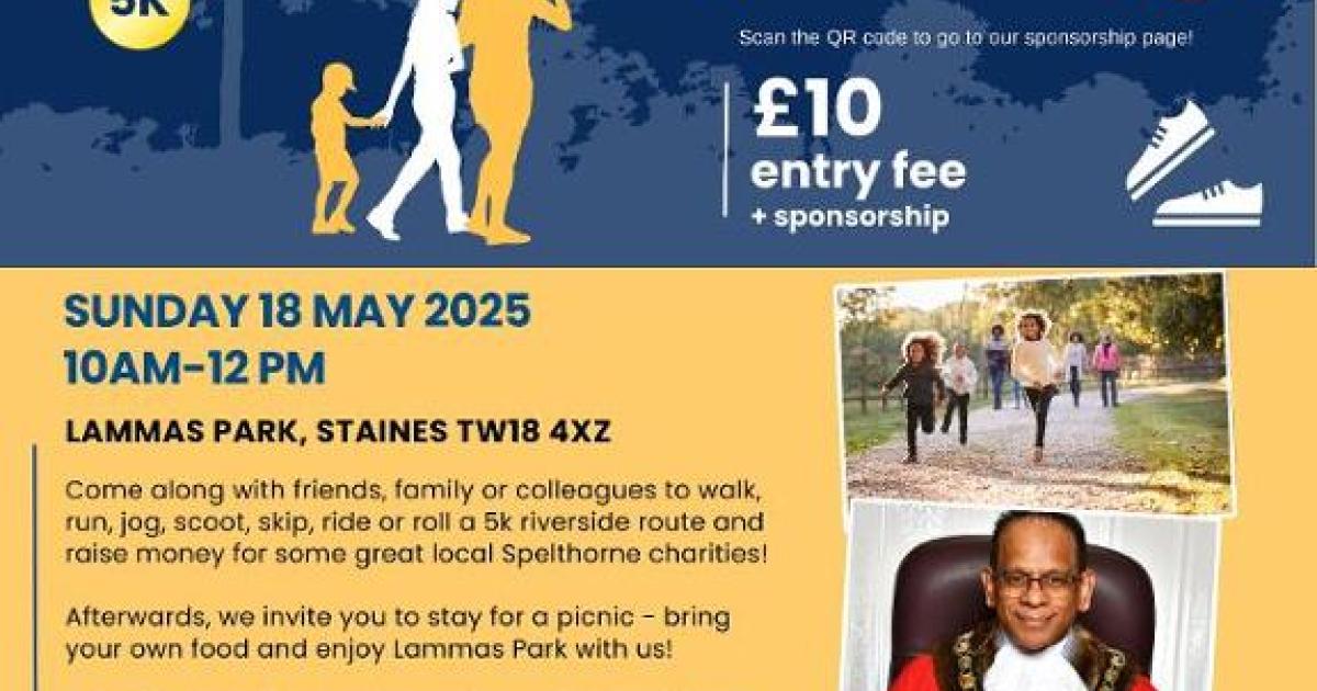 To celebrate, the Mayor of Spelthorne is inviting the whole community to take part in a sponsored 5k Charity Walk along the riverside at Staines to raise money for some fantastic local causes including Citizens Advice Runnymede and Spelthorne, Ashford and St. Peter's Hospital, Stanwell Food Bank, Newlife for Disabled Children and Manor Mead School.